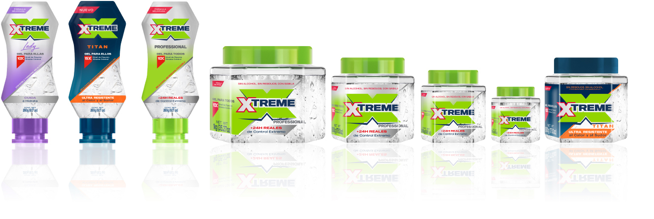 El Gel Xtreme Professional ofrece cuidado y fijación para toda la familia. Cuida y protege tu cabello mientras te brinda una fijación extrema de larga duración .